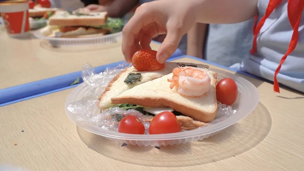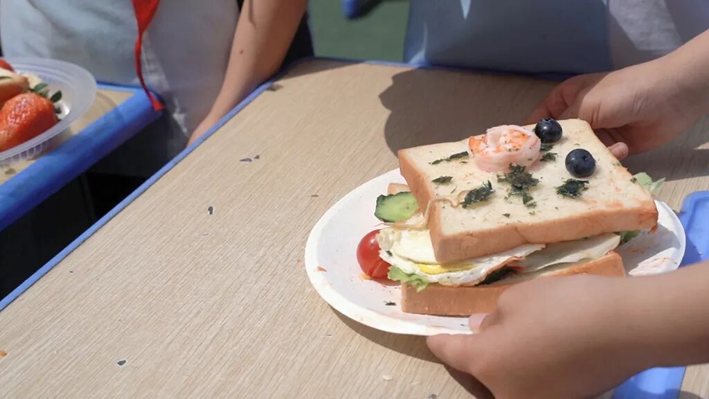 三四年级的“创意三明治制作大赛”则充满生活气息与创意灵感。同学们分工协作,从食材搭配到造型设计,各显身手,一份份色香味俱全的作品,不仅体现了动手能力,也展示了健康饮食理念。