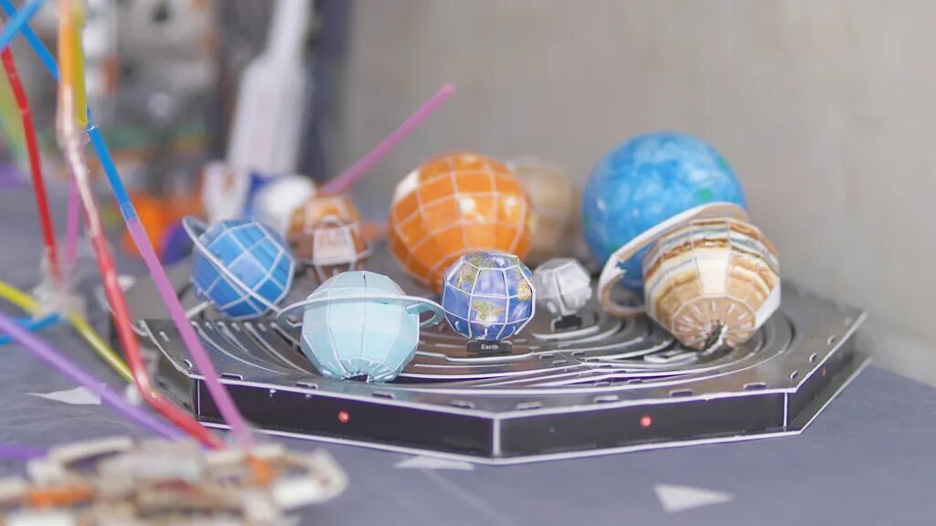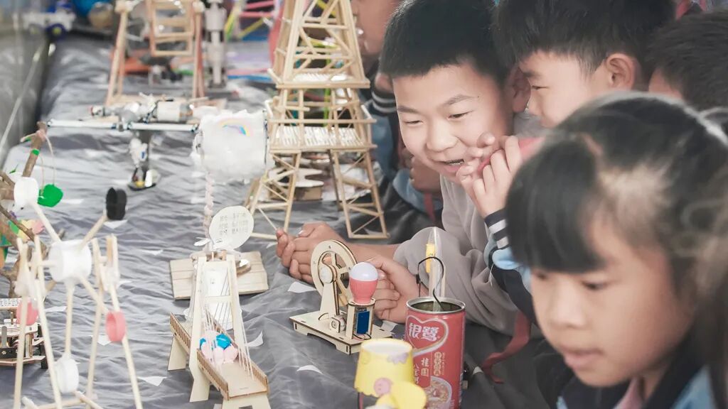 除劳动竞赛外,科技元素同样贯穿活动全过程。校园中院设置了学生科技作品展区,一件件由学生自主设计制作的科技小发明、创意模型整齐陈列,吸引众多师生驻足观赏。各年级同步开展科学实验实操活动:趣味指南针制作、水力发电演示、虹吸现象展示、“火山喷发”等实验轮番上演。同学们在动手操作中理解科学原理,在观察与体验中感受科学魅力,现场不时传来阵阵惊叹与掌声。