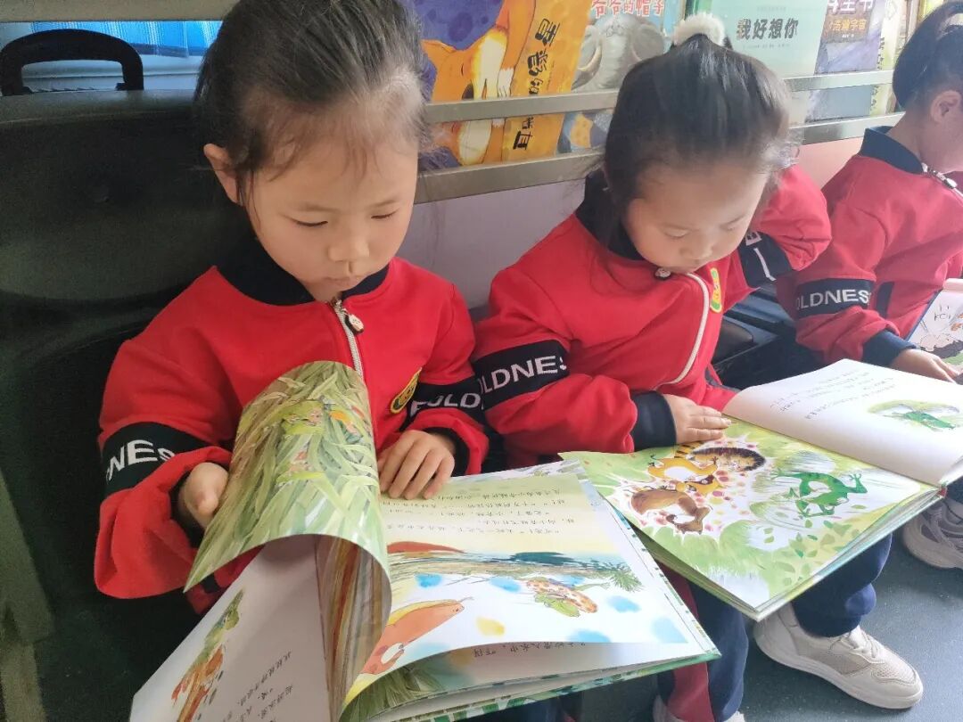 活动现场,满载书籍的流动图书车一进校园,就吸引了孩子们好奇的目光。在老师和图书馆工作人员的引导下,孩子们有序登上图书车,近距离探索这辆“移动图书馆”的神奇之处。大家好奇地打量着车内的整体布局、整齐的书架结构和便捷的阅览功能,新奇的眼神里满是欢喜与期待。工作人员向孩子们简单介绍了流动图书车的作用和书籍摆放方式,让大家直观感受到公共阅读服务的便捷与温暖。车内准备了大量适合幼儿阅读的精美绘本、启蒙读物和科普图画书,色彩鲜艳、内容生动,孩子们围在书架旁,认真挑选、轻轻翻阅,在图文并茂的故事里感受阅读的快乐,现场气氛温馨又热闹。